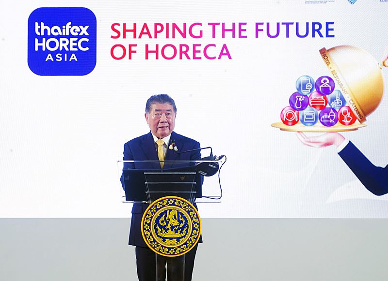 วันที่ 6 มีนาคม 2567 เวลา 11.30 น. นายภูมิธรรม เวชยชัย รองนายกรัฐมนตรีและรัฐมนตรีว่าการกระทรวงพาณิชย์ เป็นประธานในพิธีเปิดงาน THAIFEX – HOREC ASIA 2024 เพื่อบุกตลาดส่งออกสินค้ากลุ่มอุตสาหกรรม HoReCa (ธุรกิจโรงแรม ร้านอาหาร และการจัดเลี้ยง) ผลักดันศักยภาพให้ไทยกลายเป็นศูนย์กลางภาคธุรกิจโรงแรม ร้านอาหาร และการจัดเลี้ยงระดับเอเชีย รวมทั้งสร้างอาชีพและช่วยฟื้นฟูเศรษฐกิจไทย ต่อยอดจากความสำเร็จงาน THAIFEX – ANUGA ASIA โดยเน้นด้านเทคโนโลยี นวัตกรรมและระบบบริหารจัดการที่จำเป็นกับธุรกิจโรงแรม ร้านอาหารและจัดเลี้ยง ซึ่งเป็นความร่วมมือระหว่างกรมส่งเสริมการค้าระหว่างประเทศ กระทรวงพาณิชย์ หอการค้าไทย และโคโลญเมสเซ่ เยอรมนี ที่อิมแพ็ค เอ็กซิบิชั่น เซ็นเตอร์ อาคาร 9-12