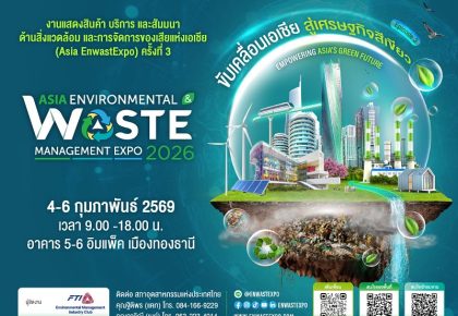 เชิญร่วมเป็นส่วนหนึ่งของการ “ขับเคลื่อนเอเชีย สู่เศรษฐกิจสีเขียว” พร้อมก้าวสู่อนาคตที่สดใสและยั่งยืนไปด้วยกันในงาน Asia EnwastExpo 2026 งานสัมมนาและแสดงสินค้านวัตกรรมสิ่งแวดล้อม วันที่ 4–6 กุมภาพันธ์ 2569 ณ อาคาร 5 – 6 ศูนย์แสดงสินค้าอิมแพ็ค เมืองทองธานี เวลา 09.00 – 18.00 น.