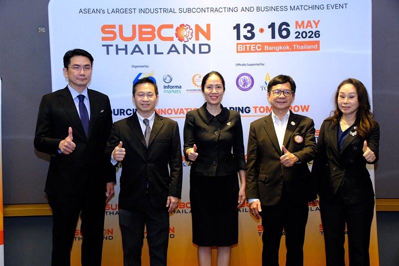 กรุงเทพฯ – สำนักงานคณะกรรมการส่งเสริมการลงทุน (บีโอไอ) ร่วมกับ อินฟอร์มา มาร์เก็ตส์ ประเทศไทย และ สมาคมส่งเสริมการรับช่วงการผลิตไทย จัดงานแถลงข่าว “SUBCON Thailand 2026” โดยปีนี้ก้าวสู่ปีที่ 20 เพื่อประกาศความพร้อมในการจัดงานเวทีสำคัญของอุตสาหกรรมการผลิตและซัพพลายเชน ซึ่งงานจะจัดขึ้นระหว่างวันที่ 13–16 พฤษภาคม 2569 ณ ไบเทค บางนา ภายใต้แนวคิดการเป็น “SOURCING INNOVATION SHAPING TOMORROW” โดยงาน SUBCON Thailand 2026 มุ่งเน้นการเชื่อมโยงผู้ประกอบการไทยเข้าสู่ห่วงโซ่อุปทานโลก พร้อมเปิดโอกาสให้เกิดการจับคู่ธุรกิจจริงระหว่างผู้ซื้อระดับโลกและผู้ผลิตชิ้นส่วนไทย